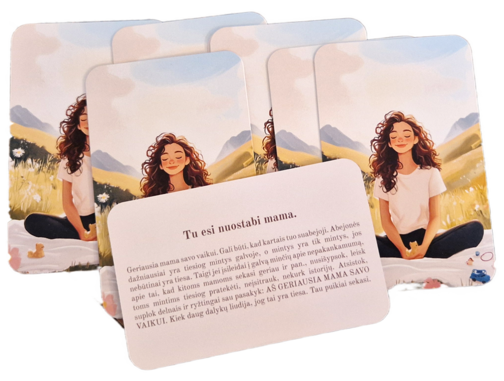 Rinkinį sudaro 70 kortų. Kortos skirtos pirmakartėms mažų vaikų mamoms, nors žiūrint kūrybingai puikiai tinka ir mamoms, turinčioms daugiau vaikų. Tai puiki dovana neseniai vaikelio susilaukusiai draugei, žmonai, o gal dukrai. Taip pat tai puiki dovana sau, jei greit tapsi ar neseniai tapai mama.